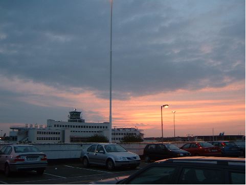 Einen Tag nachdem wir die Zimmerdecke fertig hatten, hiess es für uns Gästebett aufbauen und abends nach Dublin fahren und Suse und Mario abholen. Da die beiden so gebucht hatten, dass sie erst spät ankommen, bescherten sie uns unwissentlich einen wunderschönen Sonnenuntergang mit dem Flughafen als Kulisse.