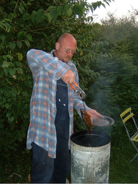 Und nach einer Weile kann man dann mit dem überaus präzisen Profiwerkzeug den fertigen leckeren Fisch ein zweites Mal angeln. Aber VORSICHTIG denn sonst fällt er ins Fass und ist nicht mehr geniesbar. Aber hier ging alles gut und wir hatten super Räucherfisch zum Abendessen. Vielen Dank nochmal den fleissigen Anglern ;-).