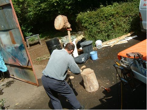 Unser Besuch hilft fleissig mit. Hier Kersten beim Hacken.